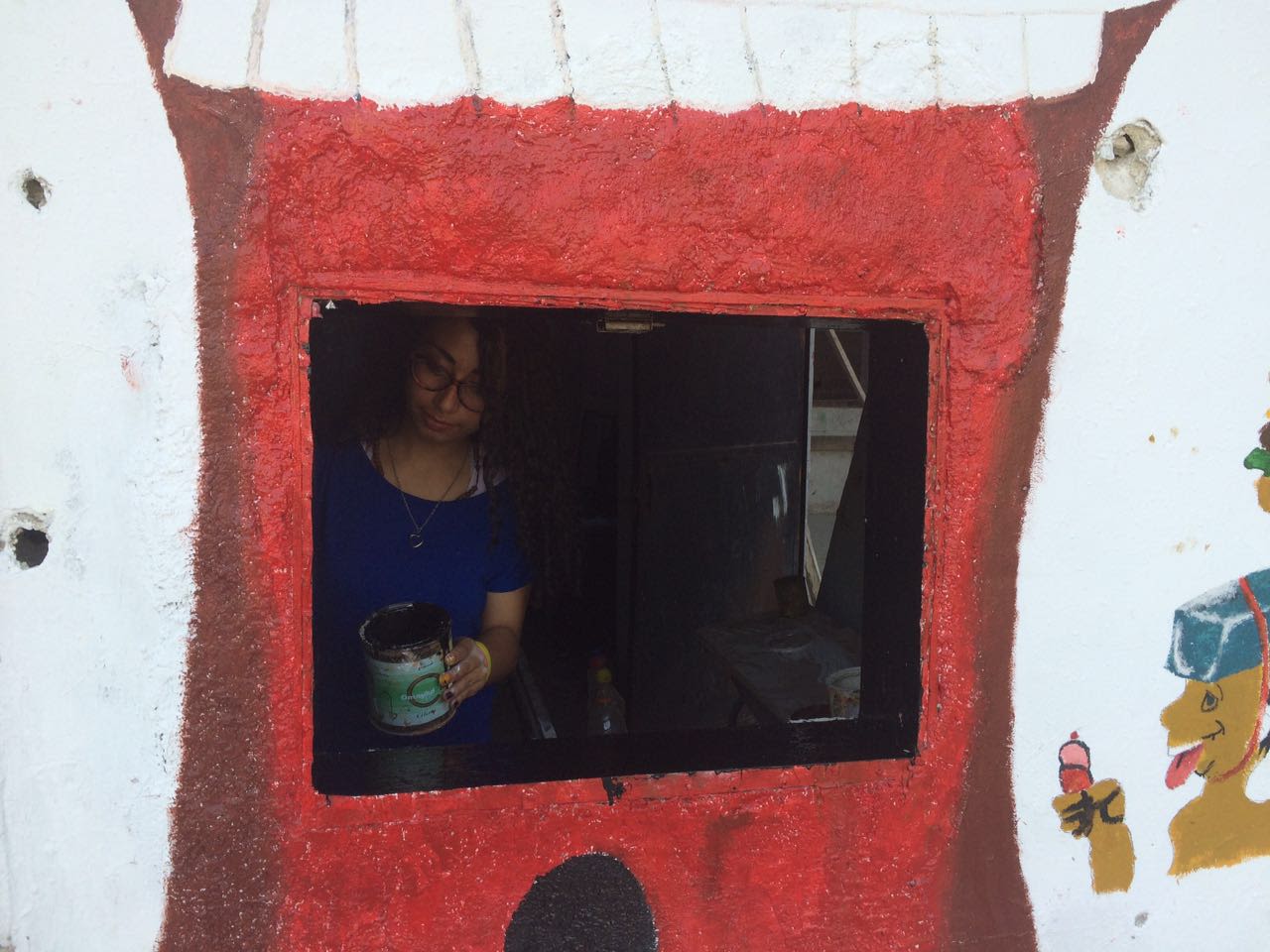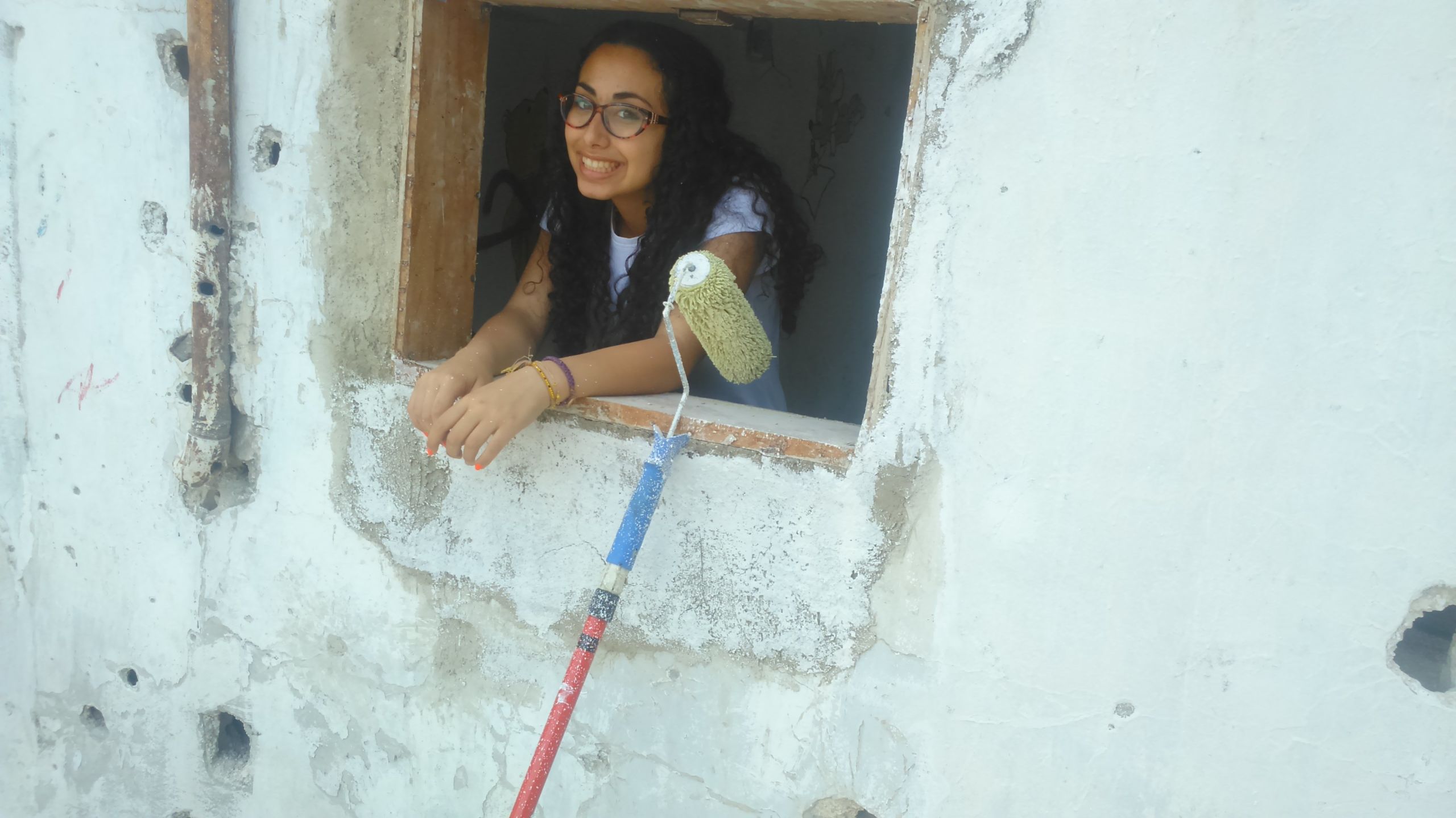حاولت إنجي مع أصدقائها خلال سنوات الحرب الذي تعرّضت له مدينتها حمص أن تمحو آثار الدمار، فقامت هذه الطفلة التي تتمتع بموهبة الرسم بتزيين تلك الجدران المدمرة، "كمحاولة حرفية لتلوين المدينة مرة أخرى".