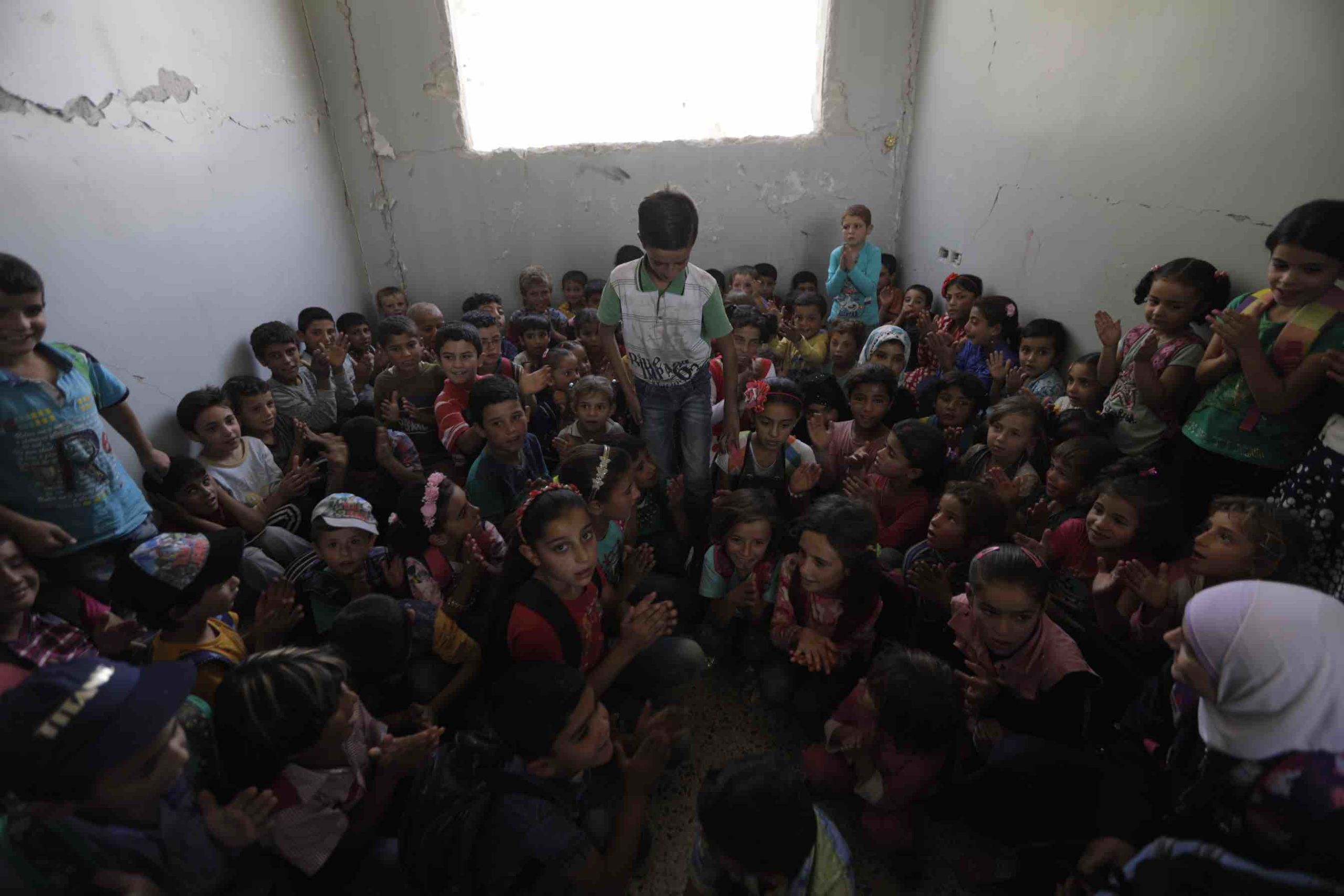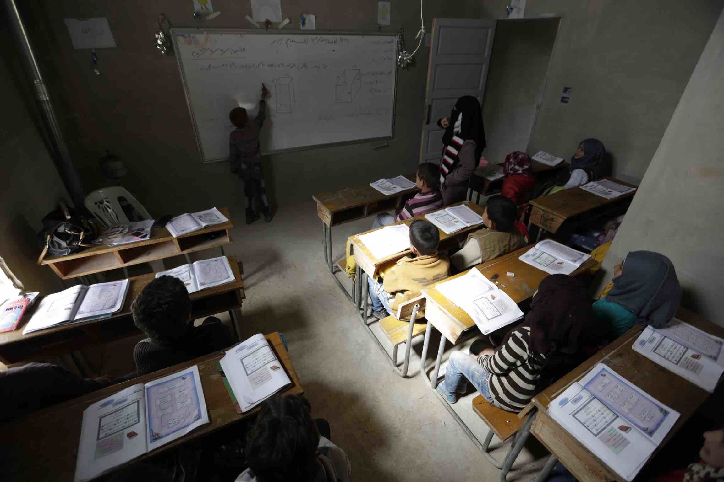 يضم هذا الصف أطفالاً من مختلف الأعمار، ما يفرض تحدياً على المدرسين خلال شرح المعلومات فالمناهج الدراسية لا تناسب الجميع في نفس المستوى.