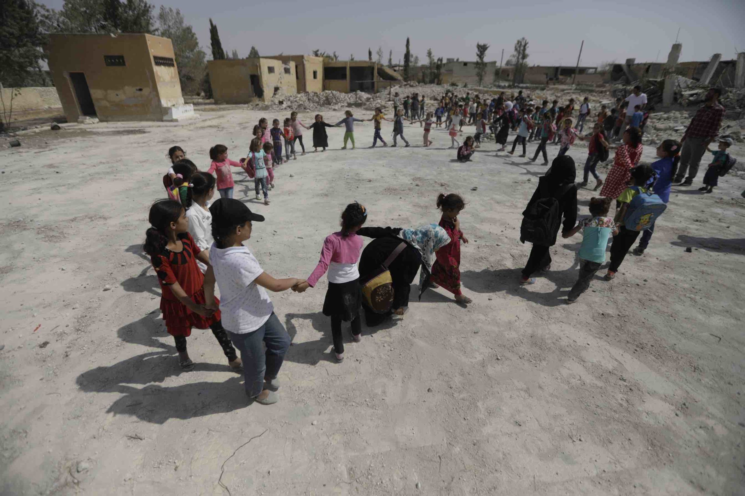 An estimated 40 per cent of school infrastructure in Syria has been damaged or destroyed in the war.