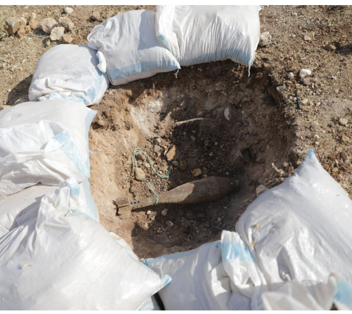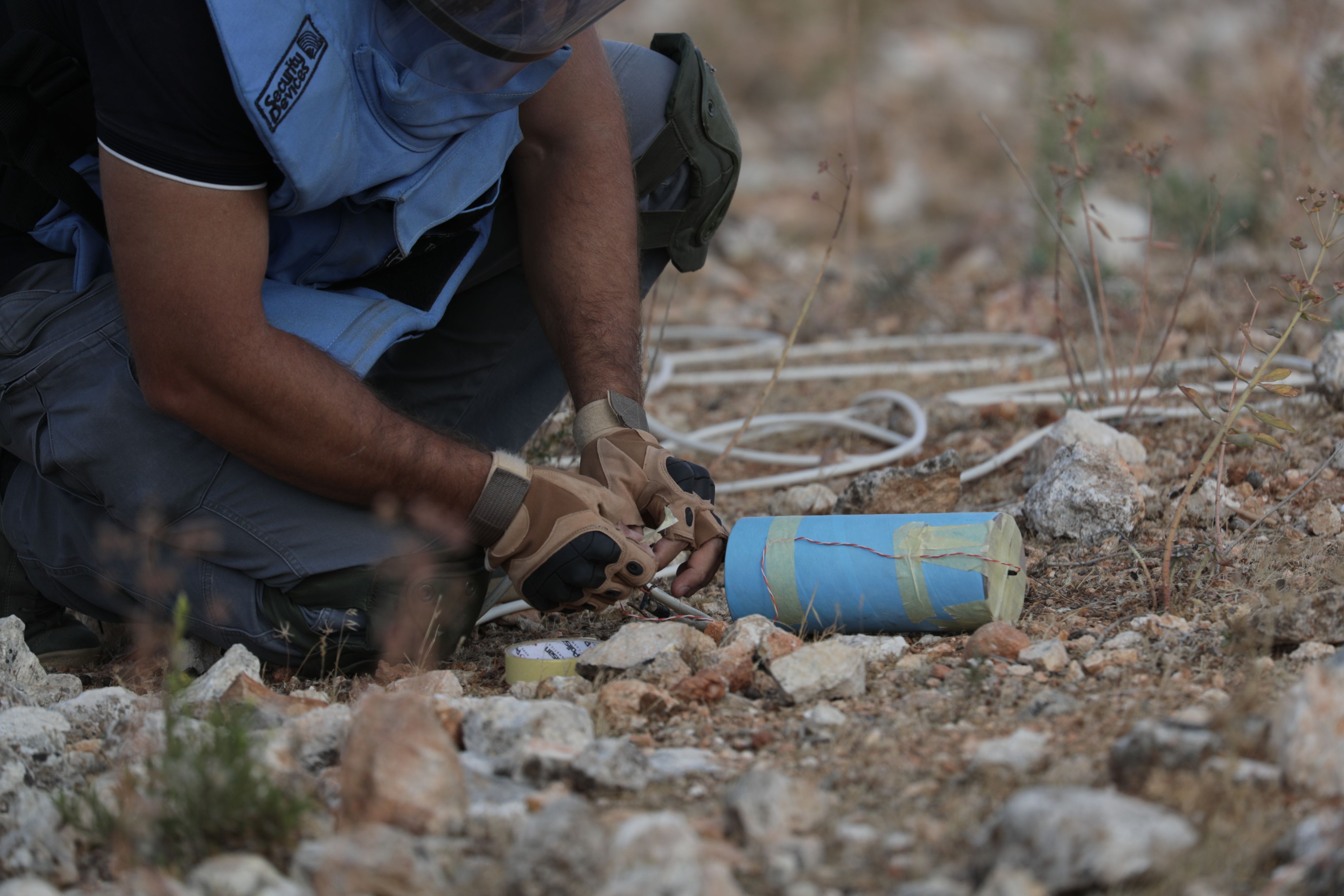 أولاً يقومون بإجراءات قياسية دقيقة جداً معدة مسبقاً، يقومون بحفر حفرة في حال كان المخلف كبيراً، ومن ثم يتم إحاطة الحفرة بأكياس الرمل وإضافة طوق الحماية بحسب حجم المخلف، ويتم إغلاق جميع الممرات في هذه المنطقة خلال عملية التخلص لحماية المدنيين في المنطقة خلال عملية التخلص من هذه المخلفات.