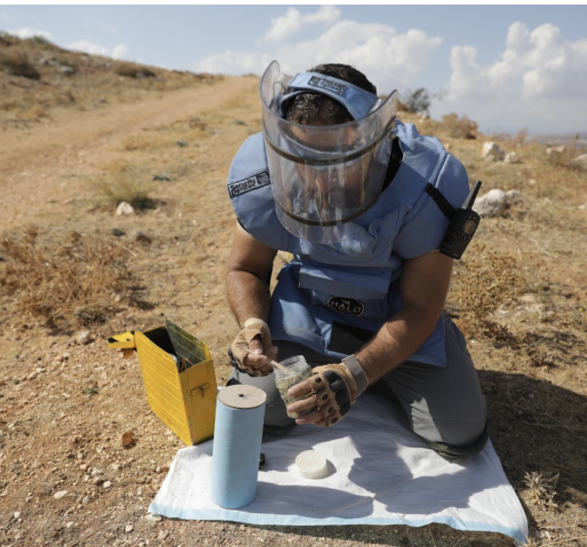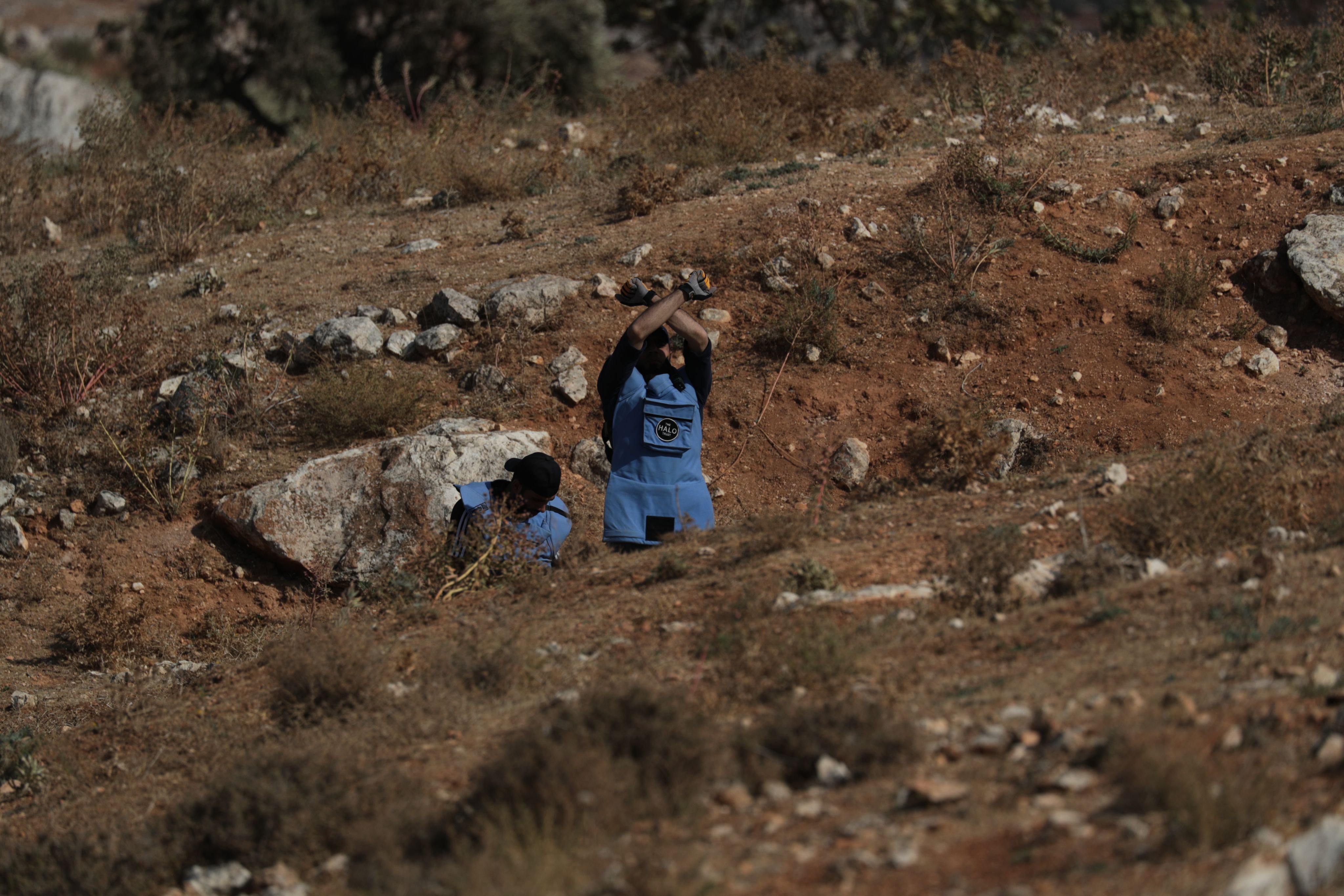 تايني هاند رافقت منظمة هالو في مهمة للتخلص من أحد المخلفات الحربية، يقول حسين "تلقينا خبر بوجود مخلف عنقودي، ونحن هنا اليوم للتخلص منه، لقد سبق أن تخلصنا من مخلفات حربية مثل مدافع الهاون أو القنابل اليدوية".